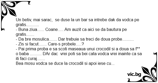 Un betiv, mai sarac, se duse la un bar sa intrebe dak da vodca pe gratis...........