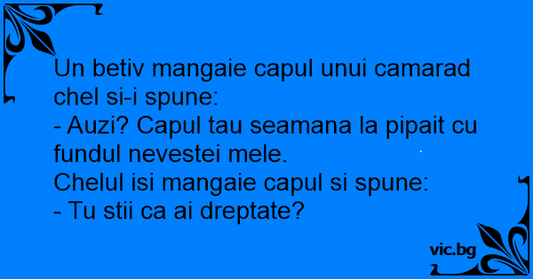 Un betiv mangaie capul unui camarad chel si-i spune: