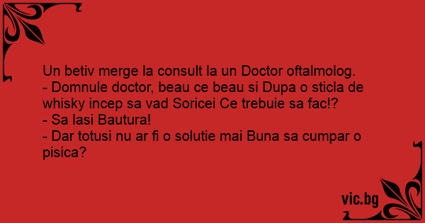 - Domnule doctor, beau ce beau si Dupa o sticla de whisky incep sa vad Soricei Ce trebuie sa fac!?