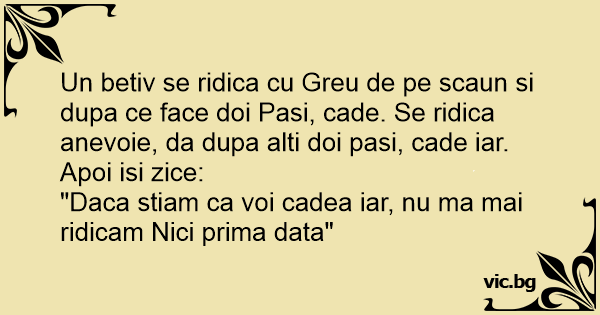 Un betiv se ridica cu Greu de pe scaun si dupa ce face doi Pasi, cade. Se ridica anevoie, da dupa alti doi pasi, cade iar.