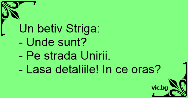 Un betiv Striga: - Unde sunt? - Pe strada Unirii. - Lasa detaliile! In ce oras?