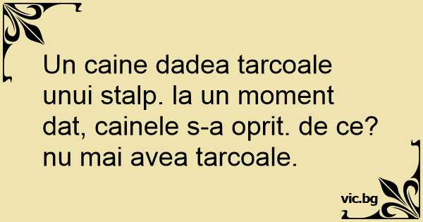 Un caine dadea tarcoale unui stalp. la un moment dat, cainele s-a oprit. de ce? nu mai avea tarcoale.