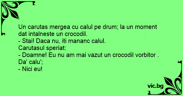 Un carutas mergea cu calul pe drum; la un moment dat intalneste un crocodil.