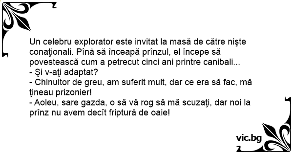 - Aoleu, sare gazda, o să vă rog să mă scuzaţi, dar noi la prînz nu avem decît friptură de oaie!