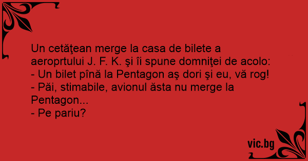 - Un bilet pînă la Pentagon aş dori şi eu, vă rog!