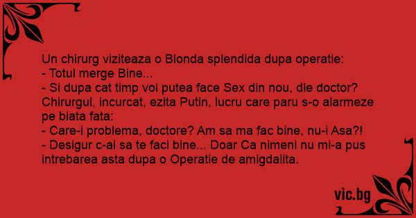 - Si dupa cat timp voi putea face Sеx din nou, dle doctor?