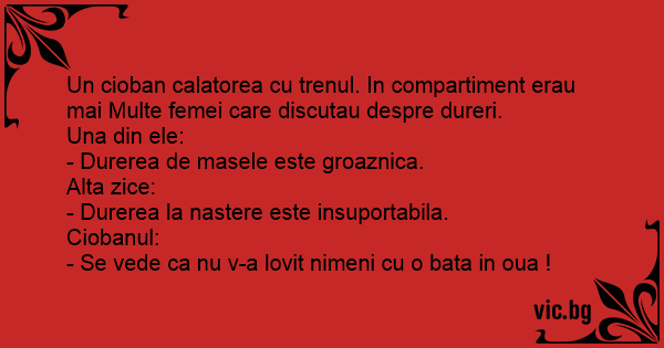 Un cioban calatorea cu trenul. In compartiment erau mai Multe femei care discutau despre dureri.
