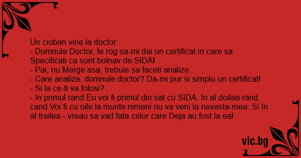 - Domnule Doctor, te rog sa-mi dai un certificat in care sa Specificati ca sunt bolnav de SIDA!
