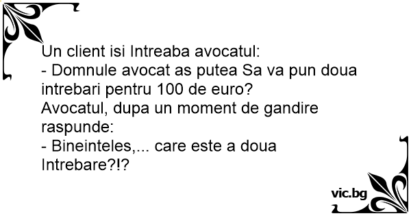 - Domnule avocat as putea Sa va pun doua intrebari pentru 100 de euro?