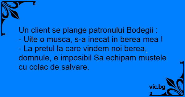- La pretul la care vindem noi berea, domnule, e imposibil Sa echipam mustele cu colac de salvare.
