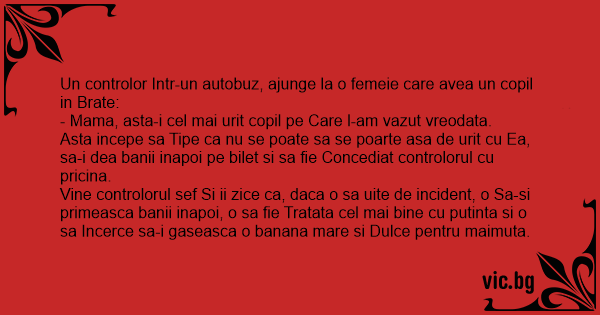 - Mama, asta-i cel mai urit copil pe Care l-am vazut vreodata.