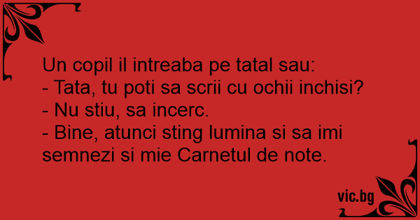 - Tata, tu poti sa scrii cu ochii inchisi?