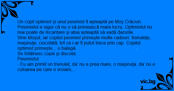 Un copil optimist şi unul pesimist îl aşteaptă pe Moş Crăciun.