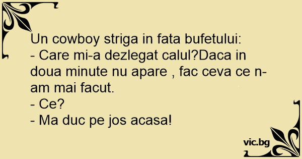 - Care mi-a dezlegat calul?Daca in doua minute nu apare , fac ceva ce n-am mai facut.