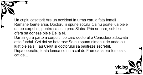 Dar singura parte a corpului pe care doctorul o Considera adecvata este fundul. Cei doi se hotarasc Sa nu spuna nimanui de unde au luat pielea si i-au Cerut si doctorului sa pastreze secretul.