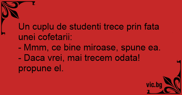 Un cuplu de studenti trece prin fata unei cofetarii: