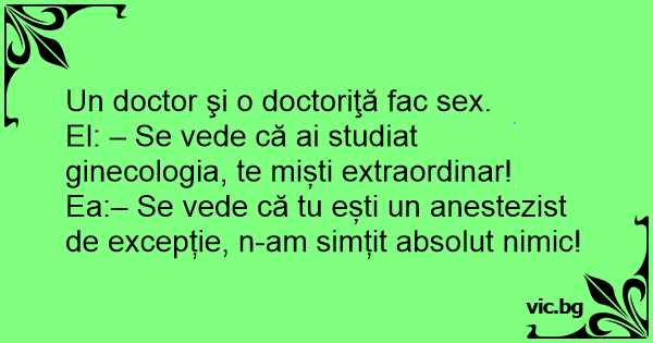 Ea:– Se vede că tu ești un anestezist de excepție, n-am simțit absolut nimic!