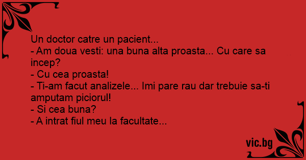 - Ti-am facut analizele... Imi pare rau dar trebuie sa-ti amputam piciorul!