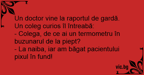 Un doctor vine la raportul de gardă. Un coleg curios îl întreabă: