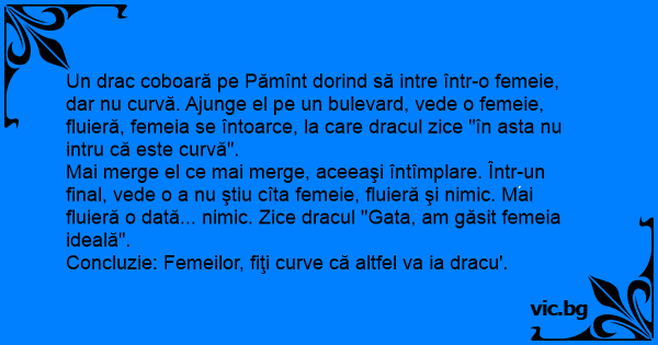 Concluzie: Femeilor, fiţi curve că altfel va ia dracu'.