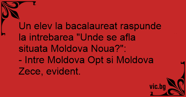 Un elev la bacalaureat raspunde la intrebarea "Unde se afla situata Moldova Noua?":