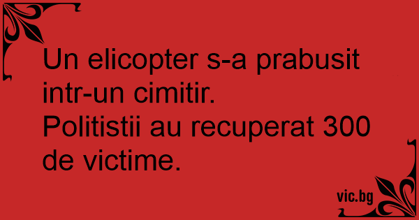 Num jornal local, chega a noticia que dizia: "Minha nossa, estamos ao vivo, e acabamos de saber que um helicóptero caiu em um cemitério e o mais curioso: já encontraram mais de 3.800 corpos !