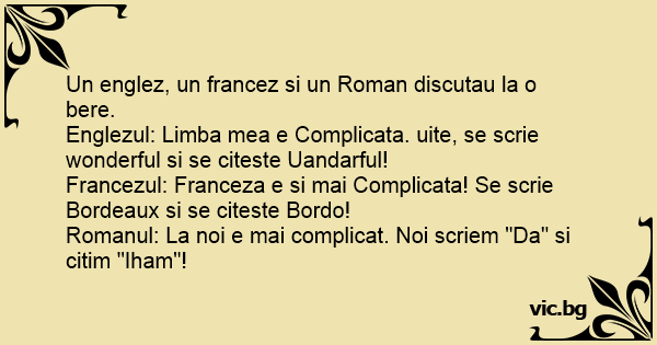 Englezul: Limba mea e Complicata. uite, se scrie wonderful si se citeste Uandarful!