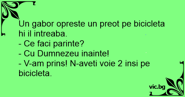 Un gabor opreste un preot pe bicicleta hi il intreaba.