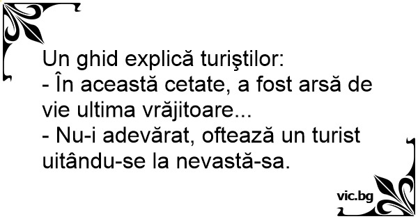 - Nu-i adevărat, oftează un turist uitându-se la nevastă-sa.