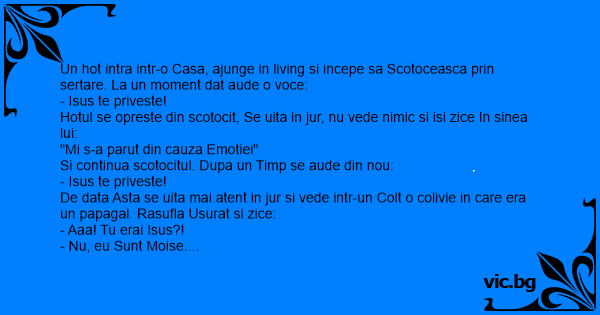 Un hot intra intr-o Casa, ajunge in living si incepe sa Scotoceasca prin sertare. La un moment dat aude o voce: