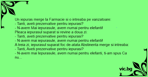 Un iepuras merge la Farmacie si o intreaba pe vanzatoare: