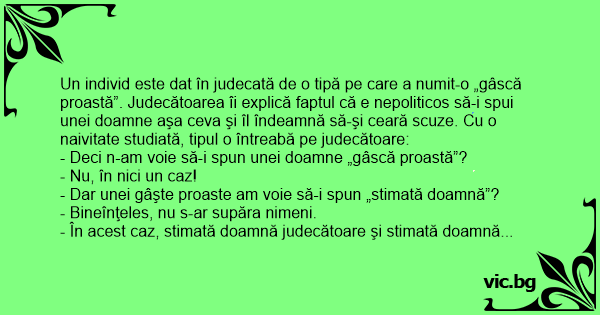 - Dar unei gâşte proaste am voie să-i spun „stimată doamnă”?