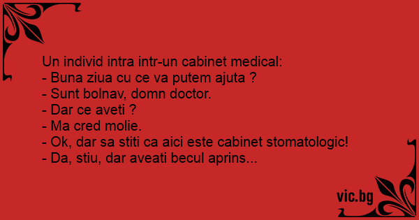 - Ok, dar sa stiti ca aici este cabinet stomatologic!