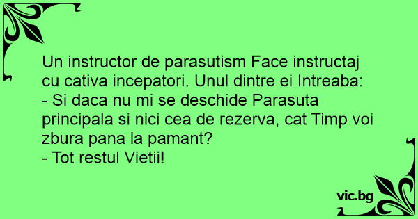 Un instructor de parasutism Face instructaj cu cativa incepatori. Unul dintre ei Intreaba: