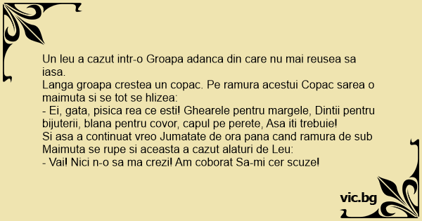 Un leu a cazut intr-o Groapa adanca din care nu mai reusea sa iasa.