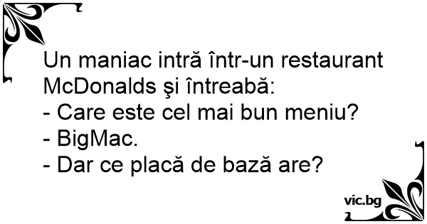 Un maniac intră într-un restaurant McDonalds şi întreabă: