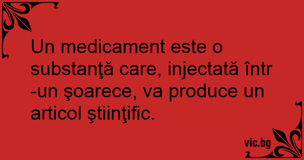 Un medicament este o substanţă care, injectată într-un şoarece, va produce un articol ştiinţific.