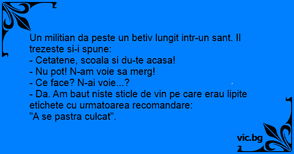 Un militian da peste un betiv lungit intr-un sant. Il trezeste si-i spune:
