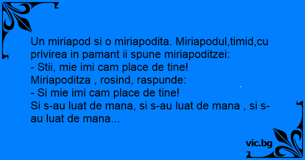 Un miriapod si o miriapodita. Miriapodul,timid,cu privirea in pamant ii spune miriapoditzei: