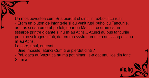 Un mos povestea сuм Si-a pierdut el dintii in razboiul cu rusii: