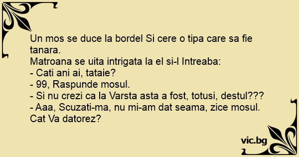 Un mos se duce la bordel Si cere o tipa care sa fie tanara.