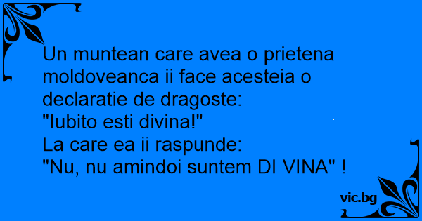 Un muntean care avea o prietena moldoveanca ii face acesteia o declaratie de dragoste: