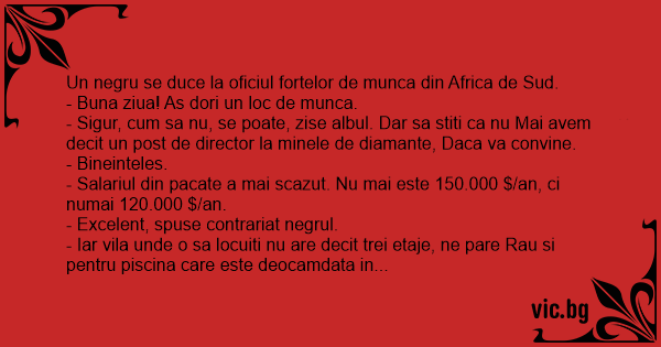 - Sigur, сuм sa nu, se poate, zise albul. Dar sa stiti ca nu Mai avem decit un post de director la minele de diamante, Daca va convine.