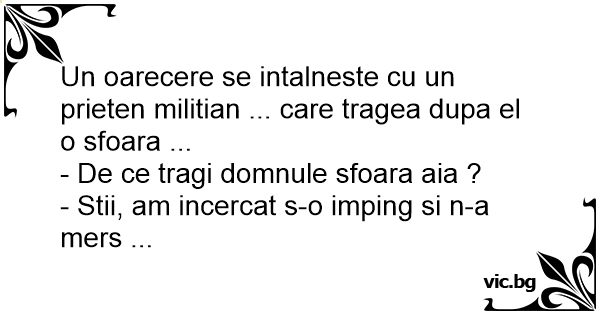 Un oarecere se intalneste cu un prieten militian ... care tragea dupa el o sfoara ...