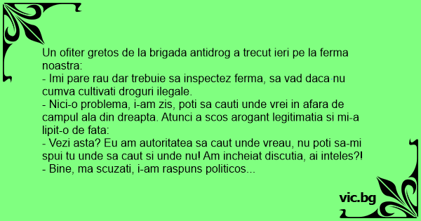 Un ofiter gretos de la brigada antidrog a trecut ieri pe la ferma noastra: