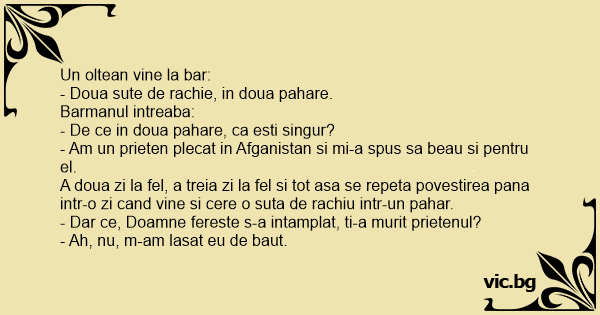- Am un prieten plecat in Afganistan si mi-a spus sa beau si pentru el.