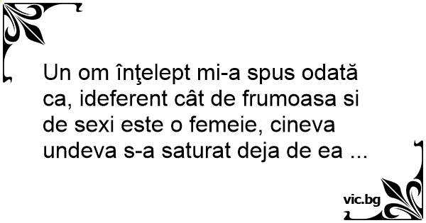 Un om înţelept mi-a spus odată ca, ideferent cât de frumoasa si de sexi este o femeie, cineva undeva s-a saturat deja de ea ...