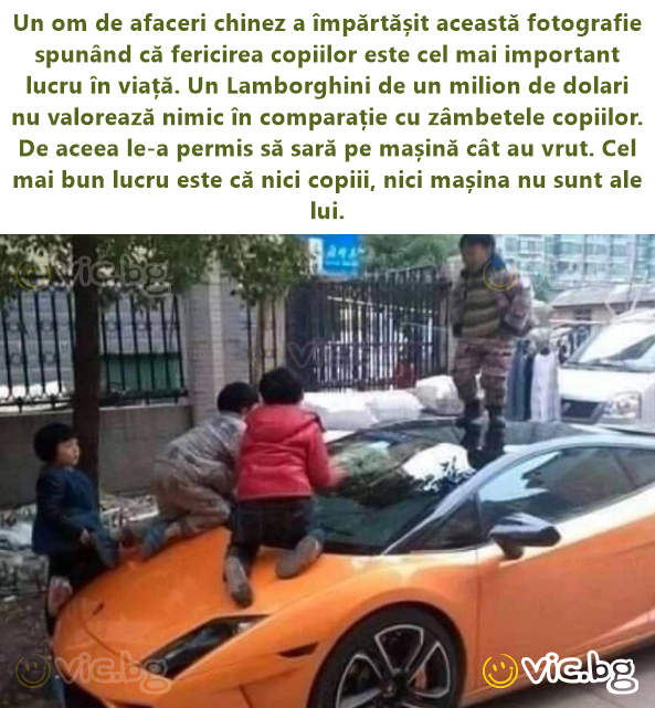 A Chinese businessman shared this picture, saying that the happiness of children is the most important thing in life. A million-dollar Lamborghini is worth nothing compared to children's smiles. So...