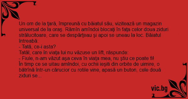 Tatăl, care în viaţa lui nu văzuse un lift, răspunde: