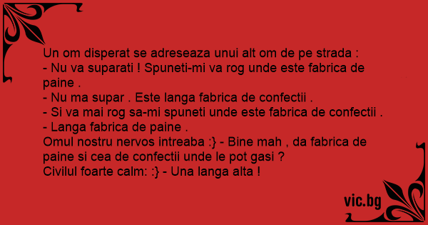 Omul nostru nervos intreaba :} - Bine mah , da fabrica de paine si cea de confectii unde le рот gasi ?